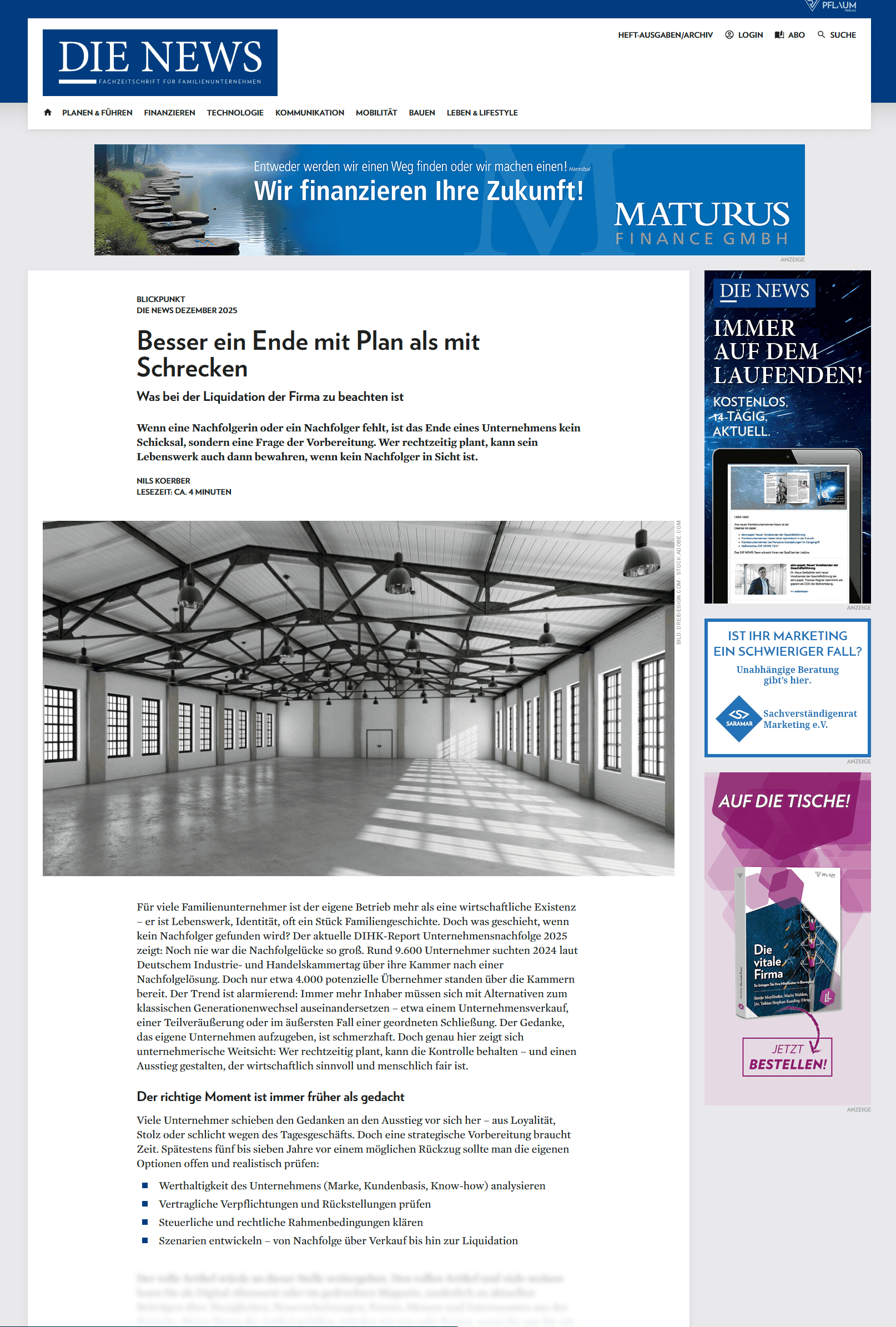 DIE NEWS 12.2025 – Besser ein Ende mit Plan als mit Schecken
